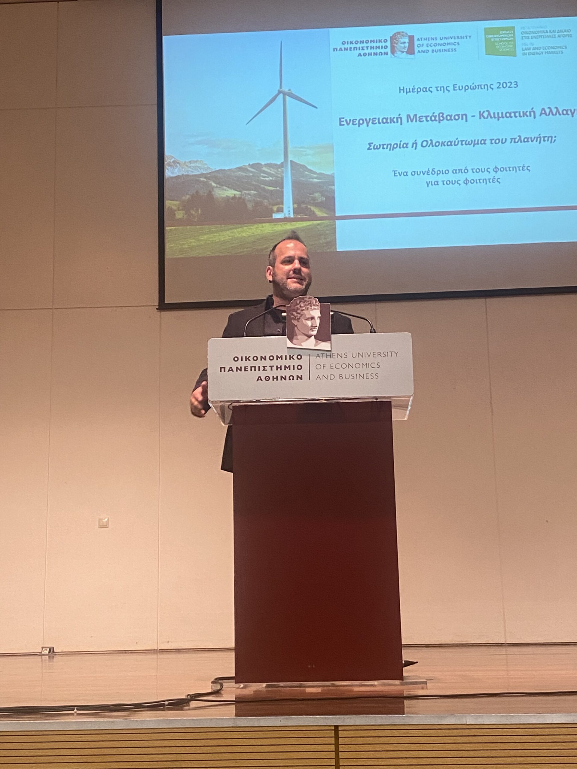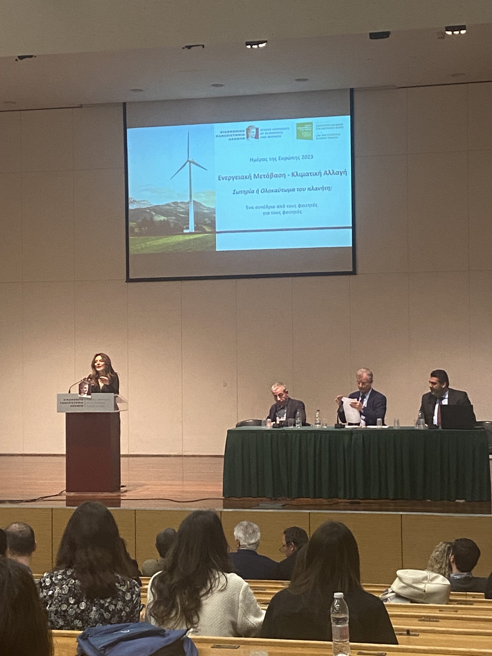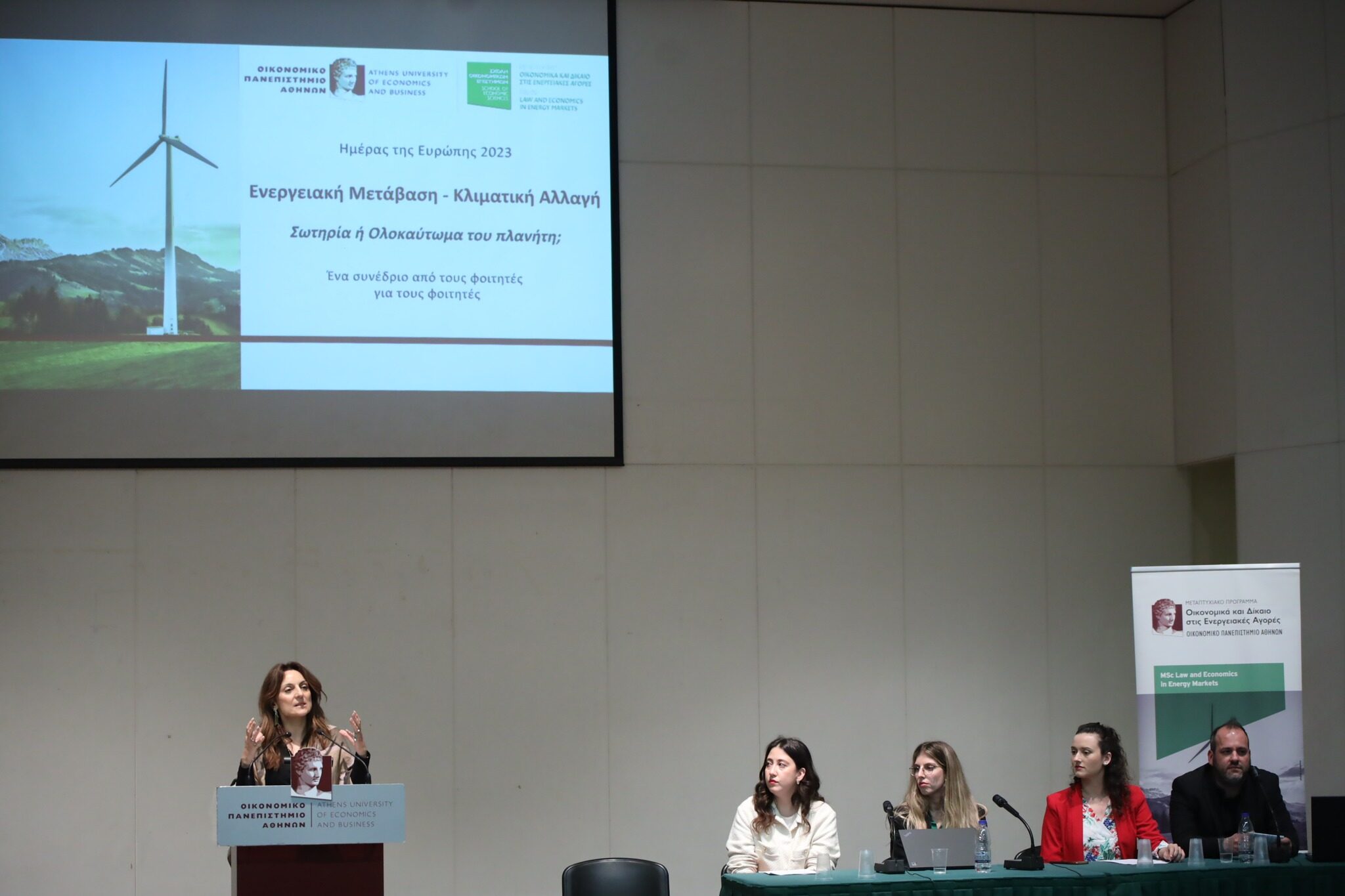 Με μεγάλη επιτυχία πραγματοποιήθηκε η επιστημονική εκδήλωση «Ενεργειακή Μετάβαση – Κλιματική Αλλαγή: Σωτηρία ή Ολοκαύτωμα του πλανήτη», ένα συνέδριο από τους φοιτητές για τους φοιτητές με τη συμμετοχή εκπροσώπων θεσμών και φορέων της Πολιτείας, που διοργανώθηκε στις 9 Μαΐου 2023 με αφορμή την Ημέρα της Ευρώπης, από το Πρόγραμμα Μεταπτυχιακών Σπουδών «Οικονομικά και Δίκαιο στις Ενεργειακές Αγορές» του Τμήματος Διεθνών και Ευρωπαϊκών Οικονομικών Σπουδών του Οικονομικού Πανεπιστημίου Αθηνών.