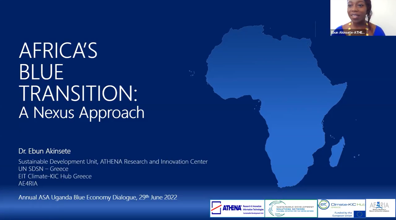 Dr. Ebun Akinsete gave a keynote speech on a WEF Nexus approach to Africa’s Blue Transition and Mrs Lydia Papadaki  presented the Maritime ClimAccelerator, the results of the Deep Demonstration for Zero-Net Emissions in Maritime Hubs: Port of Piraeus and the work of EIT Climate-KIC Greece Hub.