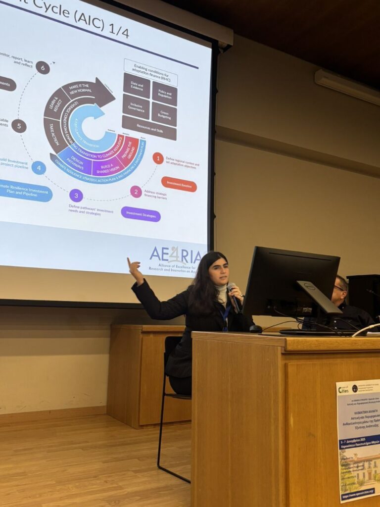 Maria Chourdaki represented the AE4RIA team, presenting the paper “The Adaptation Investment Cycle: The Missing Link for Bridging the Regional Adaptation Gap in Europe,” authored by Professor Dr. Phoebe Koundouri and Dr. Konstantinos Dellis, within the thematic area of Local and Regional Development – Economy – Entrepreneurship.