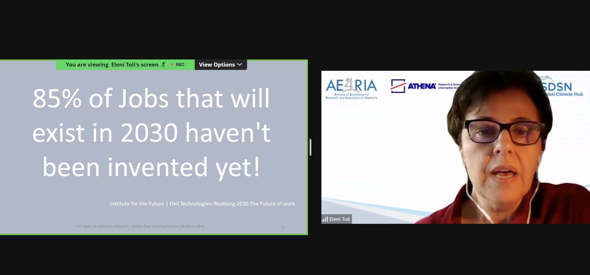 On Tuesday, March 26, AE4RIA team collaborated with the European Training Foundation Skills Lab Network of Experts for an insightful peer learning session focused on sustainability and the fostering of new green skills.