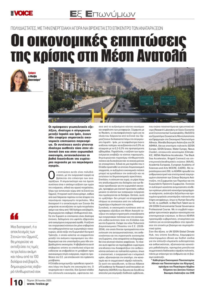 On 26 July 2025, in an interview with ERT News, Professor Phoebe Koundouri addressed the pressing issue of Greece’s recurring cycle of severe droughts followed by destructive floods. She explained how this pattern is exacerbated by the combined effects of climate change, degraded landscapes, and insufficient infrastructure. Professor Koundouri emphasised that while effective scientific solutions …
