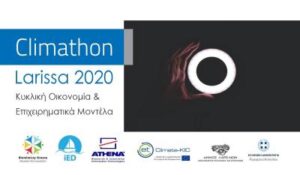 Φέτος ο Βιομιμητισμός Ελλάδος, Έρευνα και Καινοτομία (Biomimicry Greece Research and Innovation) σε συνεργασία με το Ινστιτούτο Ανάπτυξης Επιχειρηματικότητας διοργανώσαν το Climathon Larissa 2020 με την πρόκληση «Κυκλική οικονομία