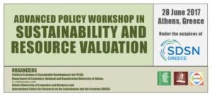 An Advanced Policy Workshop in “Sustainability and Resource Valuation” will be held on 28 June 2017 in the historic Kostis Palamas Building (Akadimias 48) in