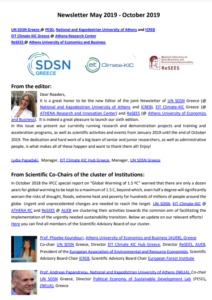 From the editor: Dear Readers, It is a great honor to be the new Editor of the joint NEWSLETTER of UN SDSN Greece (National and Kapodestrian University