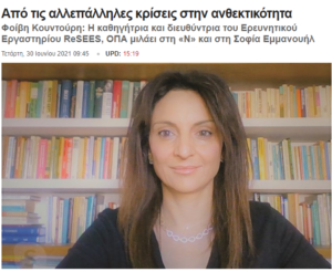 MEDIA ATTENTION IN GREECE • 30/6/21: Διαβάστε τη συνέντευξη της καθηγ. Φοίβης Κουντούρη στη «Ν» και στη δημοσιογράφο Σοφία Εμμανουήλ με τίτλο «Από τις αλλεπάλληλες κρίσεις στην ανθεκτικότητα».