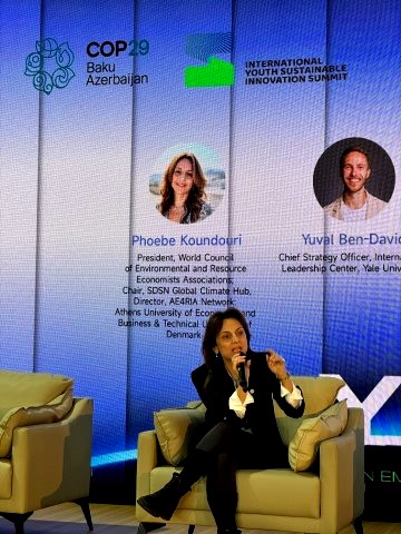 Prof. Phoebe Koundouri ,as Chair of the SDSN Global Climate Hub, highlighted the Hub’s role in facilitating global collaboration. Alongside Prof. Yannis Ioannidis, President of the Association for Computing Machinery and Co-founder of the Hub, and Dr. Ebun Akinsete, Senior Researcher at AE4RIA and Head of the Participatory Approaches Unit, the discussion focused on the Hub’s mission to develop integrated solution pathways for national and international systems. They emphasized the importance of cross-disciplinary collaboration in driving urgent, transformative change, aiming to support climate neutrality and resilience through approaches rooted in socio- economic and financial systems and enhanced by participatory, stakeholder-led design.