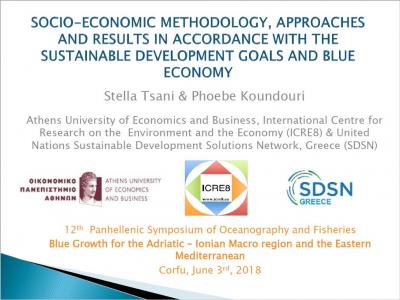 Dr. Stella Tsani and Prof. Phoebe Koundouri participated in the 12th Panhellenic Symposium of Oceanography and Fisheries, Blue Growth for the Adriatic – Ionian Macro region and the Eastern Mediterranean, held in Corfu, Greece,  30 May-3 June 2018. The symposium was organized by the Hellenic Centre for Marine Research in collaboration with the Department of Computer Science of the Ionian University. The symposium aims to enhance the collaboration between the academic and research communities of the Balkans, the Mediterranean and the Black Sea.