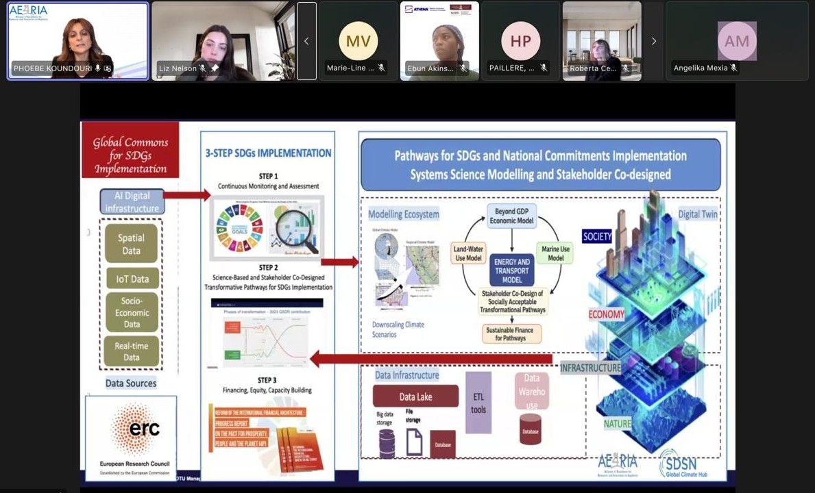 Through presentations by Professor Dr. Phoebe Koundouri, Chair of the SDSN Global Climate Hub, and Dr. Ioannis Arampatzidis, Senior Researcher at the SDSN Global Climate Hub, the Hub’s integrated systems-nexus approach was showcased. This approach links energy and emissions with food–land dynamics, biofuels potential, land requirements for renewable energy, and water constraints. The presentations emphasised that science-based solutions must be complemented by meaningful stakeholder engagement—through co-design, living labs, and participatory processes—to ensure the development of implementable and effective transition pathways.