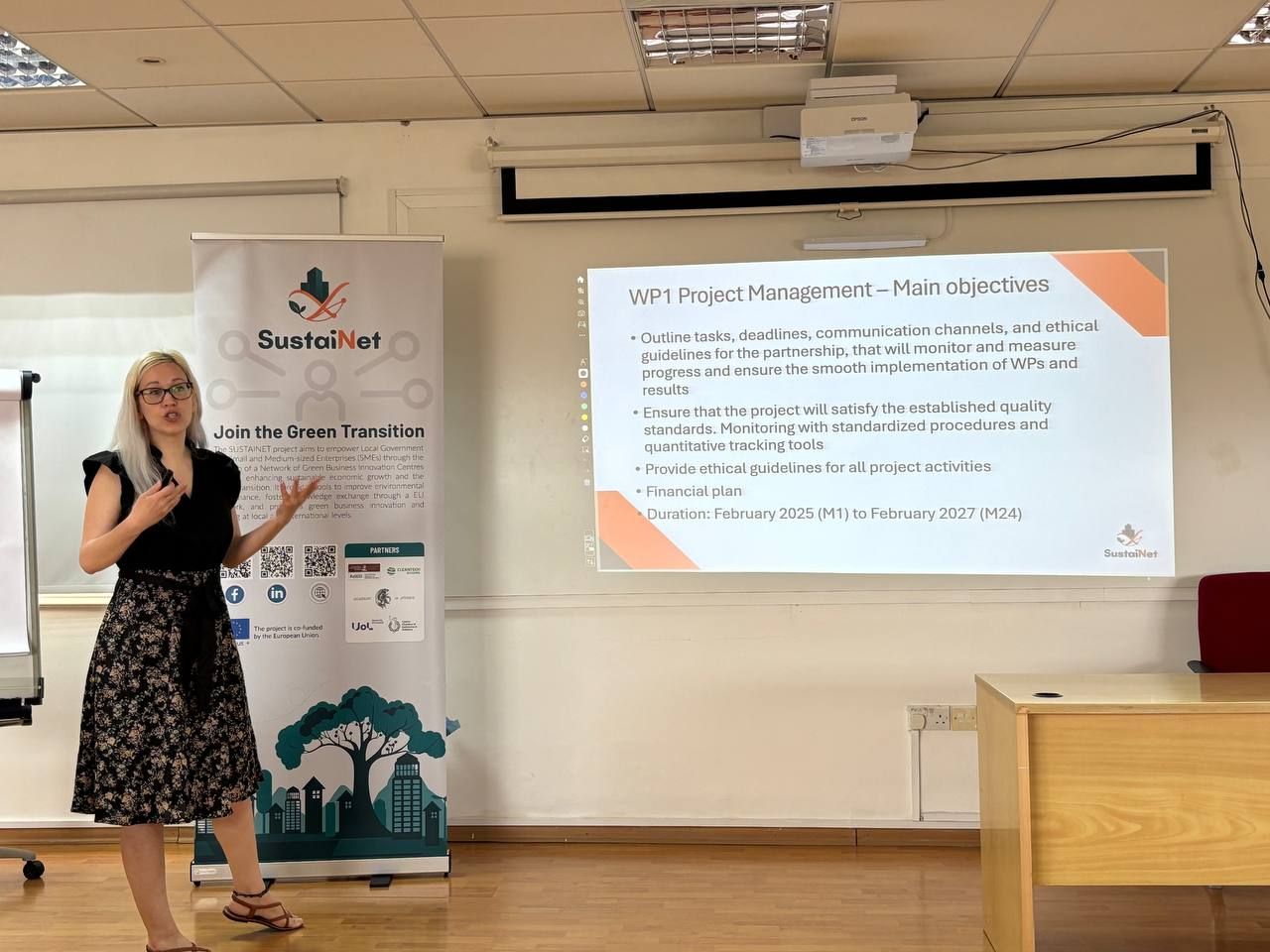 On 20–21 May 2025, the University of Limassol hosted the official kick-off meeting of the SustaiNet Erasmus+ project, a strategic initiative aimed at empowering local governments and SMEs through the creation of a transnational Network of Green Business Innovation Centres (GBICs).