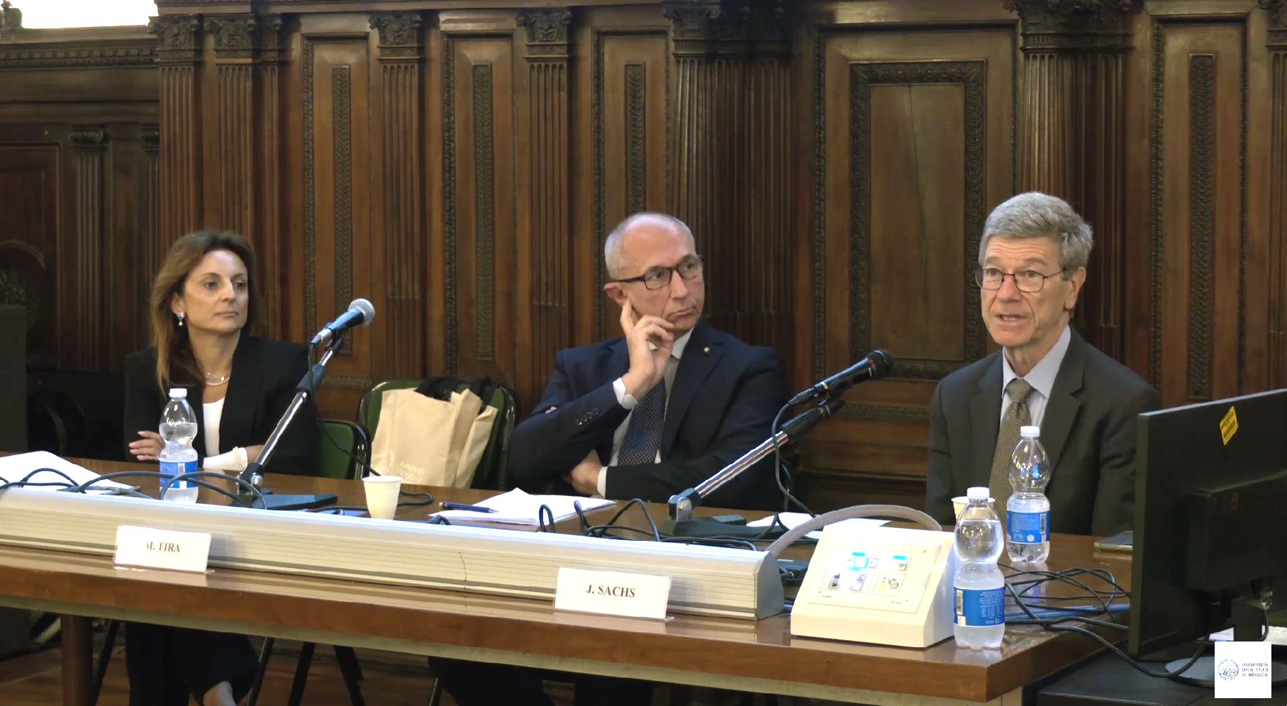 The seminar began with remarks from Prof. Francesco Castelli, Rector of the University of Brescia, and Prof. Michele Pezzagno, co-chair of SDSN Italy. Together with Prof. Jeffrey Sachs, Professor Koundouri shared insights about the #PactfortheFuture, which was endorsed by world leaders at the UN General Assembly in September in New York.