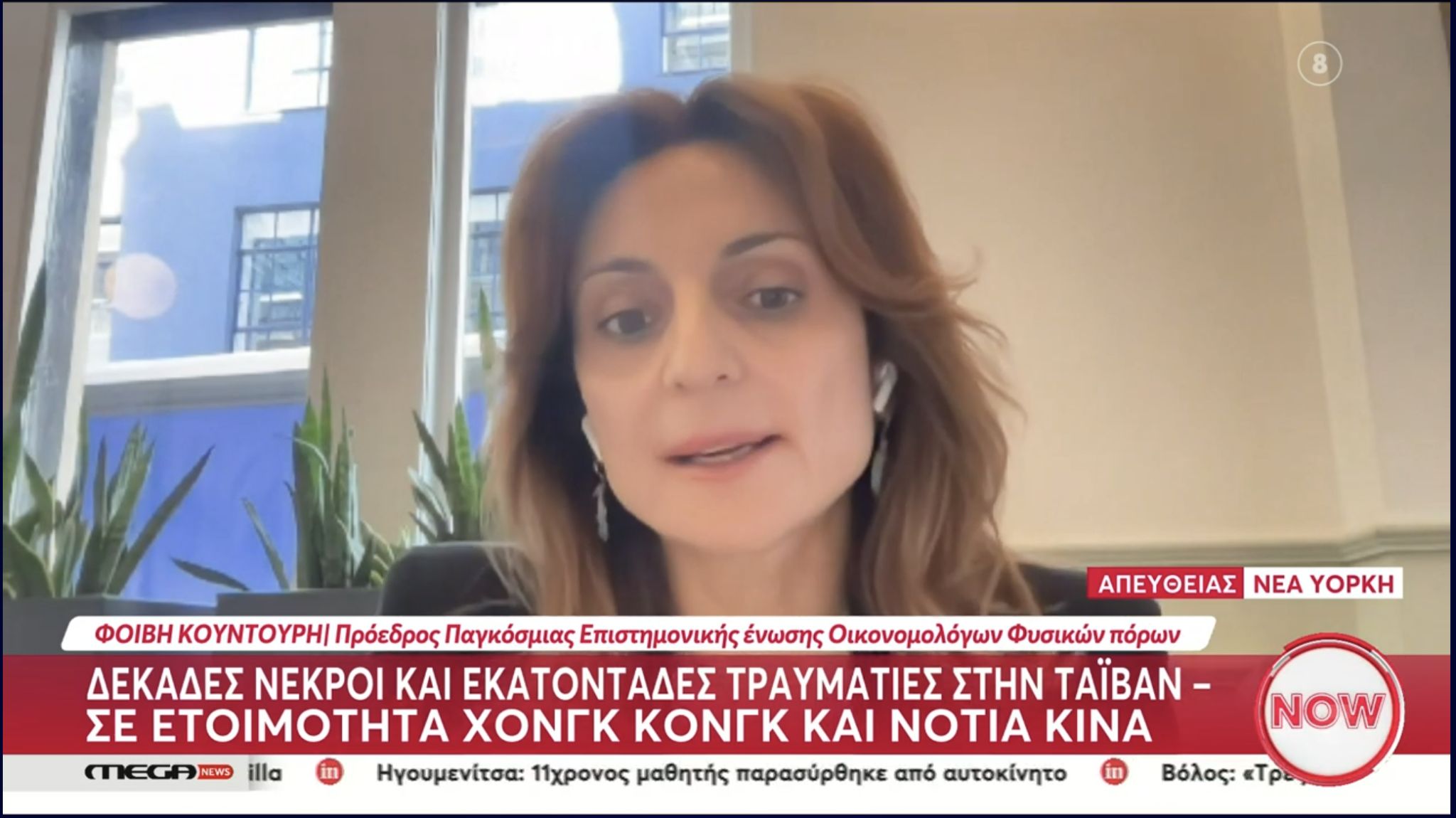 On 25 September 2025, in an interview on Mega TV News in Athens, Greece, following the devastating impact of Super Typhoon Ragasa—the strongest storm of 2025, which struck Taiwan, Hong Kong, and southern China—Professor Phoebe Koundouri stressed the role of climate change in intensifying cyclones, making them stronger, wetter, and more destructive. She drew attention to the profound social and economic consequences of mass evacuations and called for urgent action, including the expansion of early warning systems, the design of resilient “sponge cities,” and the enforcement of stricter building standards to safeguard vulnerable communities.