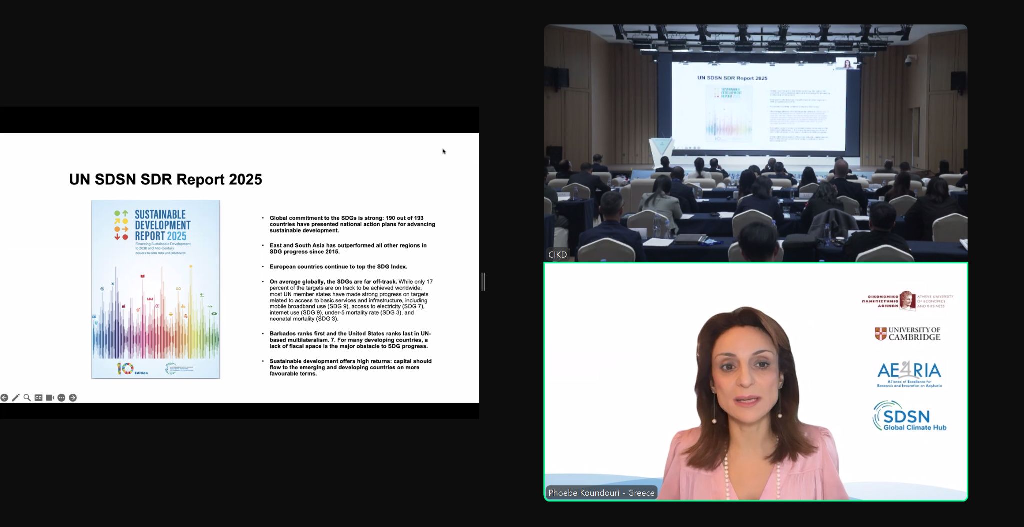 On 19 December, Professor Phoebe Koundouri spoke at the Launch of China’s Progress Report on the Implementation of the 2030 Agenda for Sustainable Development 2025, hosted by the Center for International Knowledge on Development (CIKD). The event marked a significant milestone—ten years since the adoption of the UN 2030 Agenda—providing an opportunity to reflect on progress achieved, share lessons learned, and discuss pathways to accelerate sustainable development.
