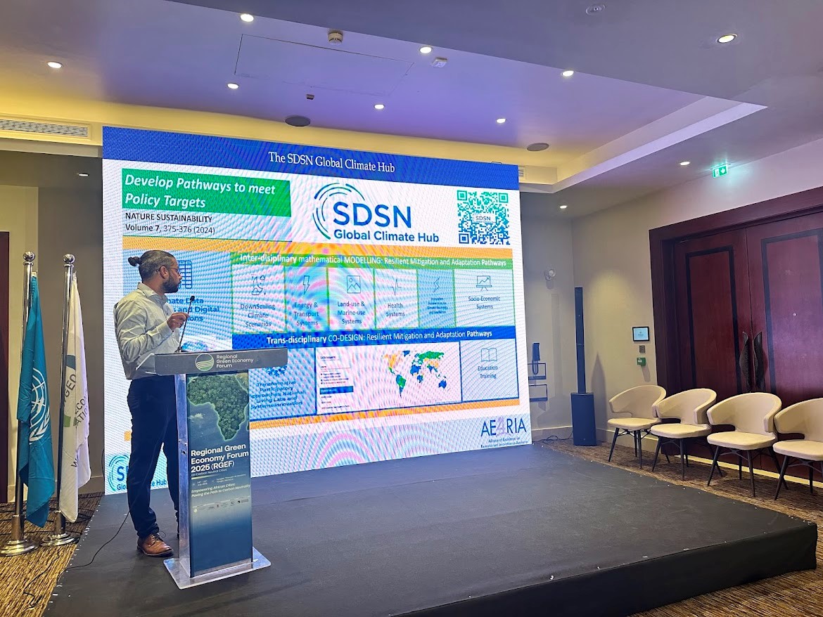 Dr. Ioannis Arampatzidis presented insights on the deep structural changes required in energy, agriculture, and natural resource management to achieve Europe’s climate neutrality by 2050. Key findings from the SDSN Global Climate Hub assessment of the National Energy and Climate Plans (NECPs) of 35 European countries were shared, highlighting the challenges, barriers, and emerging opportunities for a just, coordinated, and resilient transition.