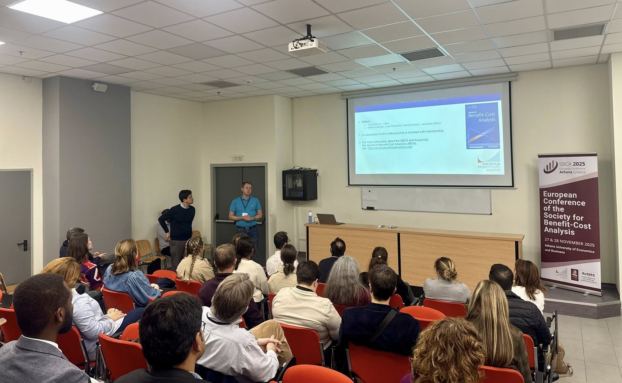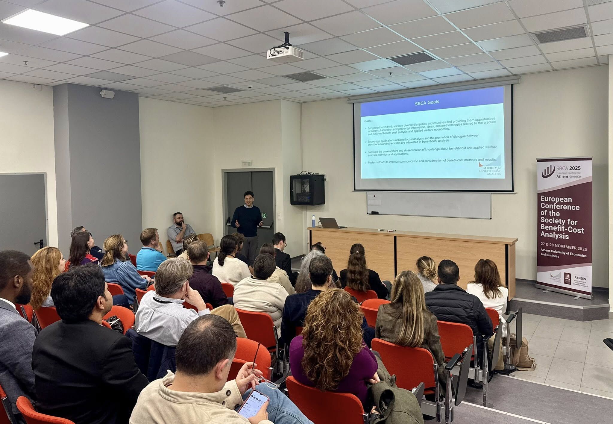 The Closing Plenary of SBCA 2025 brought the Athens conference to a thoughtful and forward-looking conclusion. Professor Dr. Phoebe Koundouri, Scientific Lead of SBCA 2025, opened the session with final reflections, thanking participants for their active engagement and emphasizing the central role of rigorous benefit–cost analysis in shaping effective, evidence-based public policy. Daniel Herrera, Vice President of SBCA, then outlined the Society’s mission and global scope, highlighting its growth and ongoing commitment to strengthening BCA theory and practice across disciplines and countries. Henrik Andersson, Associate Editor of the Journal of Benefit-Cost Analysis, presented the Journal and its contribution to advancing high-quality research in the field. Finally, Danae Arroyos Calvera announced that the 2026 European SBCA Conference will be hosted by Leeds University Business School in Leeds on 17–18 September 2026, inviting the community to reconvene and continue the conversation next year.