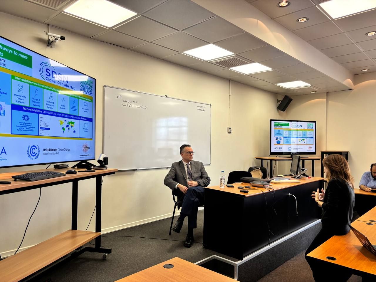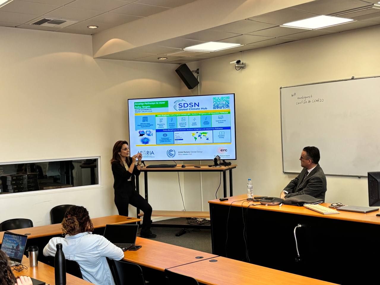 Following an introduction by Professor Dr. Phoebe Koundouri, we presented our work on systems innovation, stakeholder co-design, accelerators, education, research initiatives, and the activities of the SDSN Global Climate Hub.