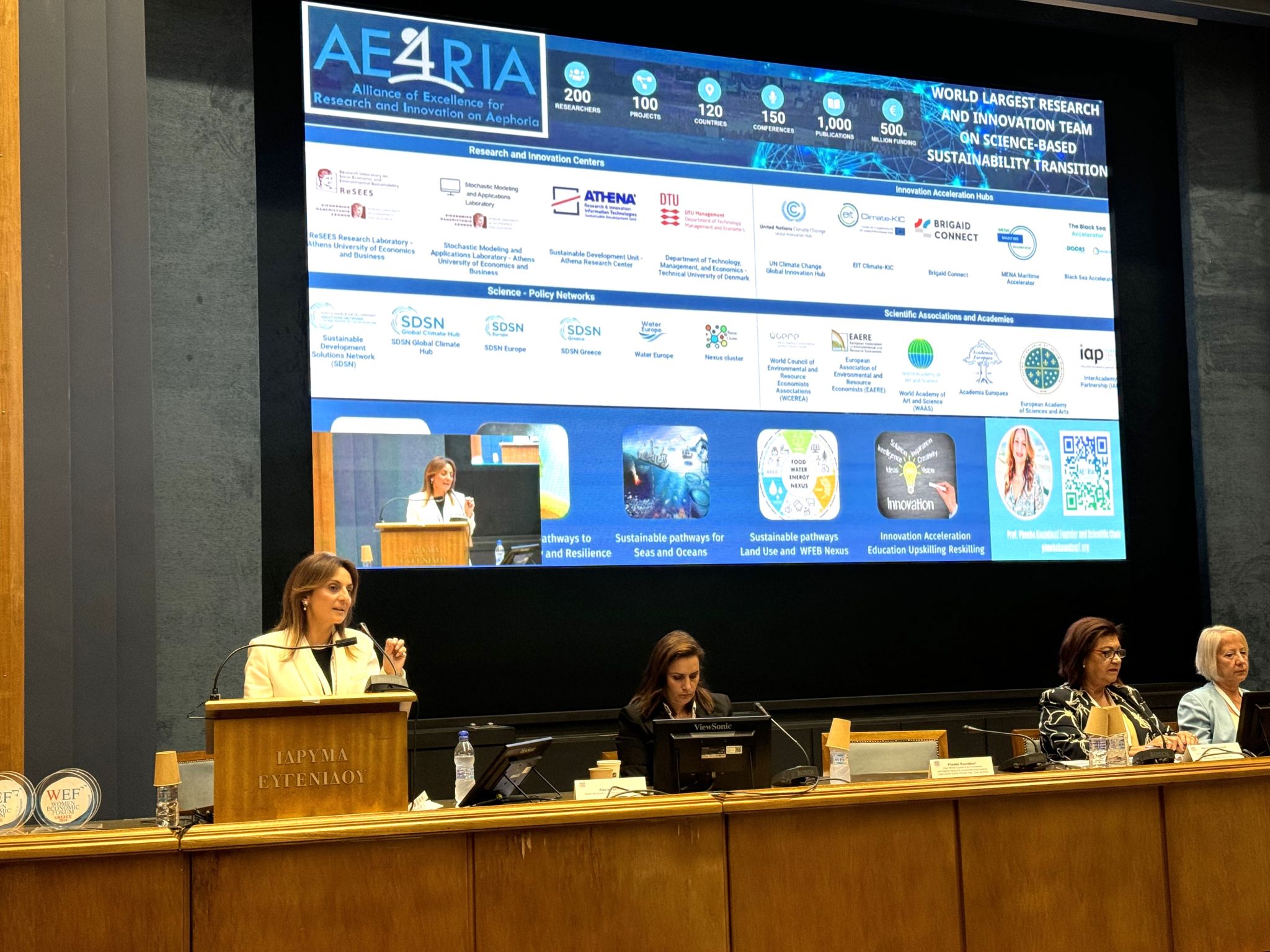 In her keynote, Professor Koundouri highlighted three technology accelerators led by her team at AE4RIA (Alliance of Excellence for Research and Innovation on Aephoria):